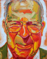 I recently had a show that consisted of a bunch of portraits of folks I know from around Charlottesville. At one point I stood up and made a brief artist’s statement, which pretty much began like the first paragraph above, talking about lowering our guard and allowing ourselves to be known. I talked about how the bright colors were meant to represent each subject’s character and affirm their dignity as image-bearers of God. A question came from the back of the room, “Why don’t you have any self-portraits up, and if you did, what colors would they be?”